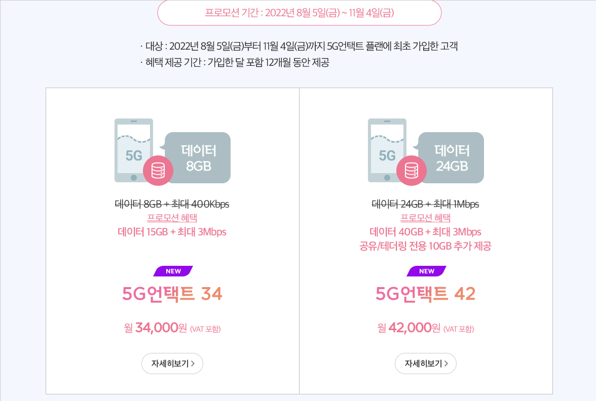 11월4일 까지 8기가 데이터에 34000원이던 요금제를 15기가 데이터를 줌으로써 혜택을 주고 있는 모습입니다.